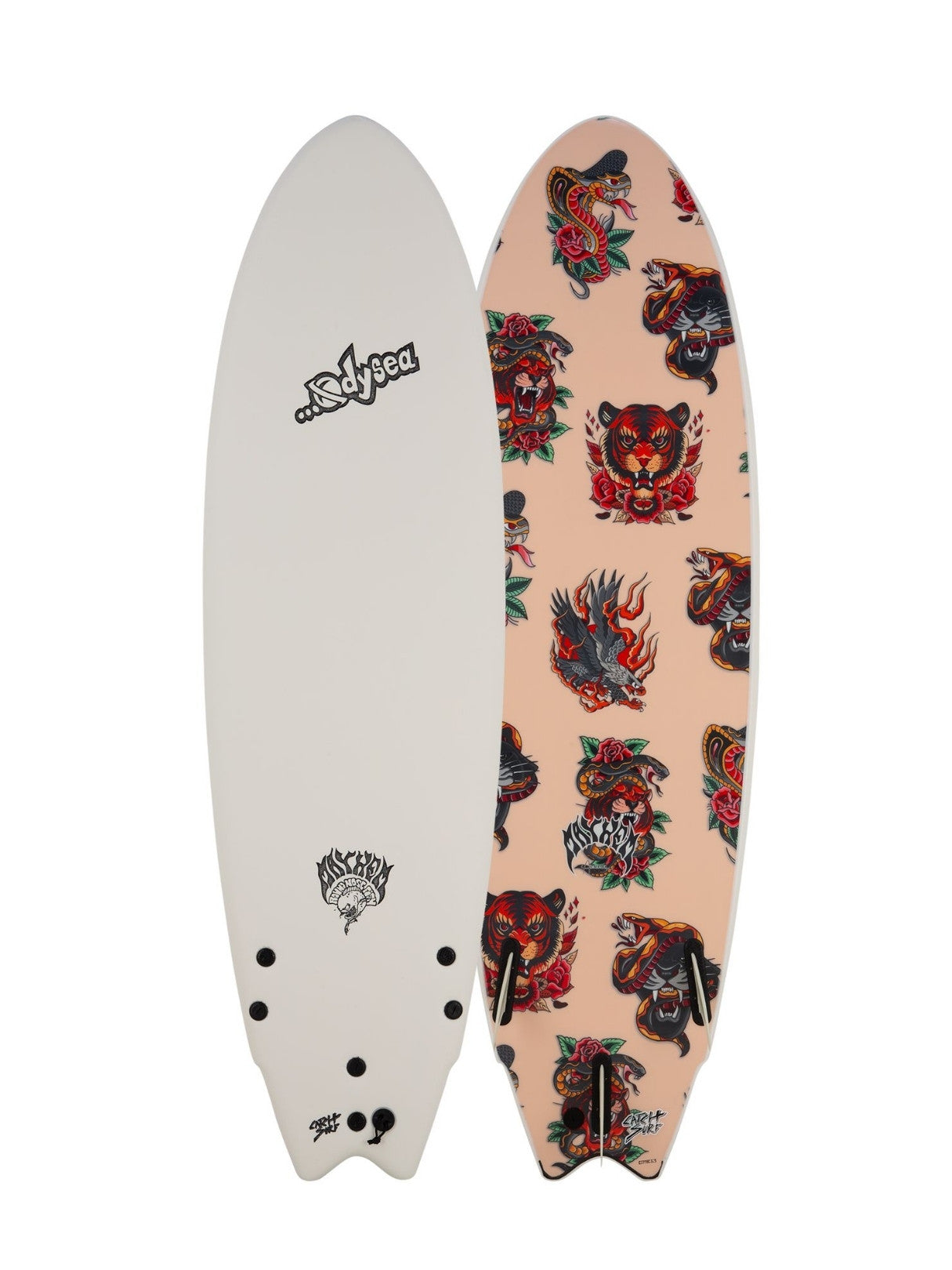 The world's all-time best selling fish model is now soft! Legendary ...Lost Surfboards shaper Matt "Mayhem" Biolos and Catch Surf joined forces to re-create his master shape in our technology. The iconic 5'5" Round-Nose Fish (RNF) is designed for a wide range of performance in varied surf; while offering easy paddle and forgiveness to make you look good. Shred hard, stay soft!